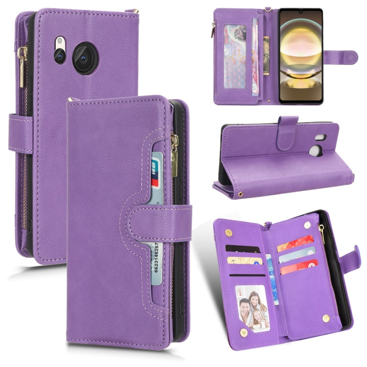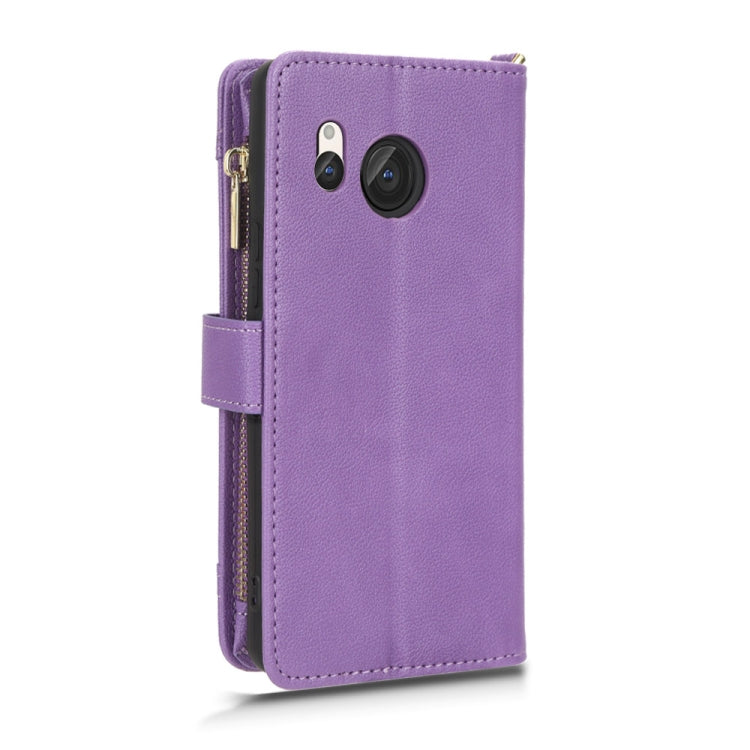Funda de Cuero Sharp Aquos R8 con Textura Litchi y Cremallera para Teléfono (Púrpura)
