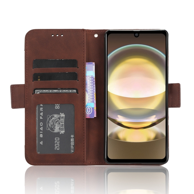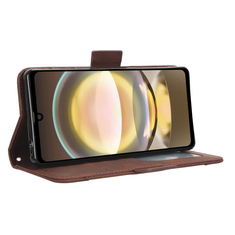 Funda de Cuero para Sharp Aquos R8 con Textura Becerro y Ranuras para Tarjetas (Marrón)