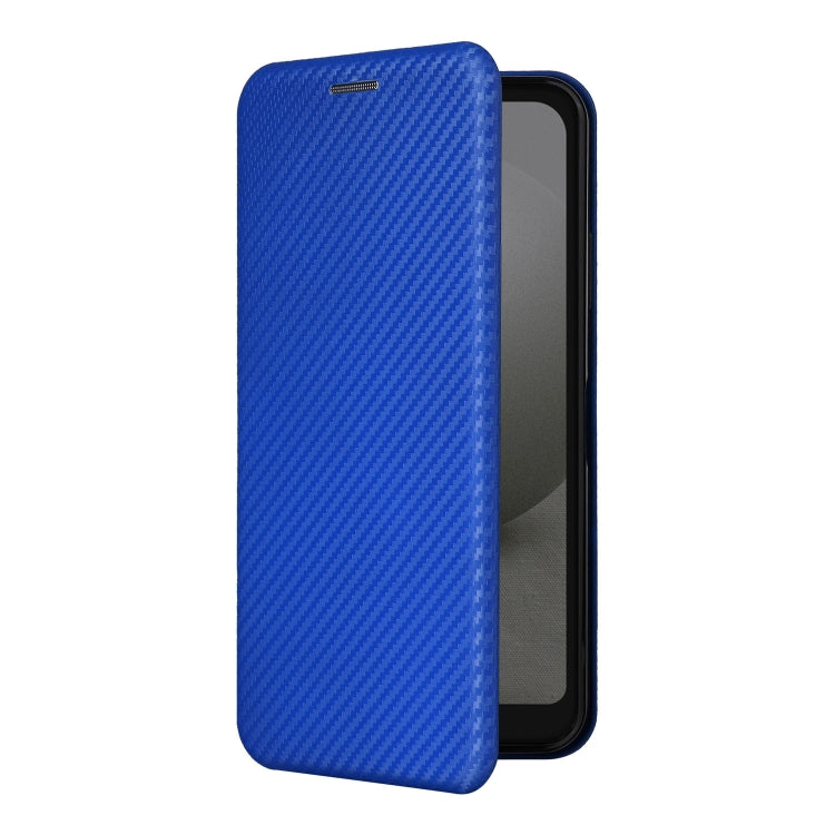 Funda de Cuero para Sharp Aquos Wish 3 con Tapa de Fibra de Carbono (Azul)