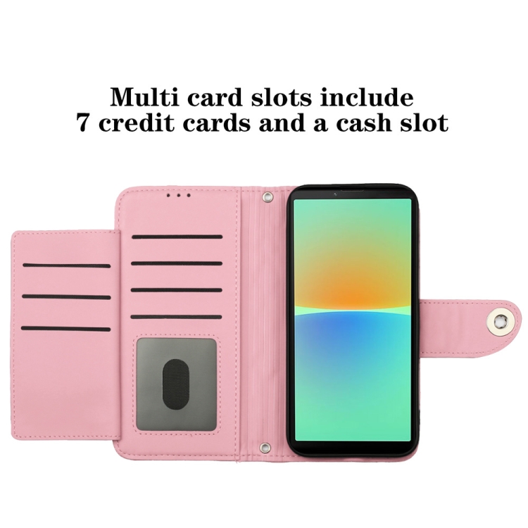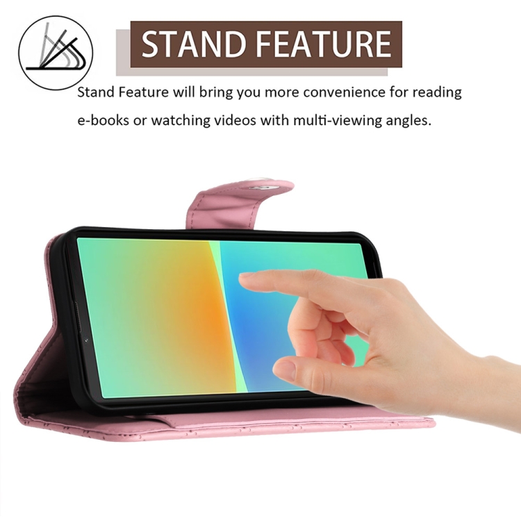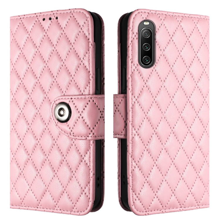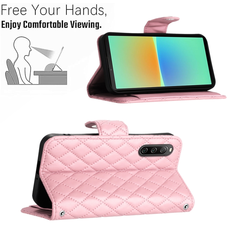 Funda de Cuero para Sony Xperia 10 IV con Tapa y Textura Rómbica con Cordón (Rosa)