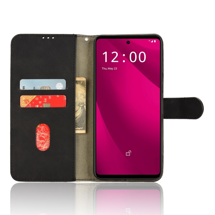 Funda de Cuero con Tapa Magnética para T-Mobile Revvl 7 Pro 5G (Negro)