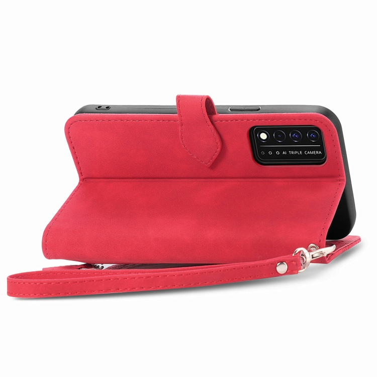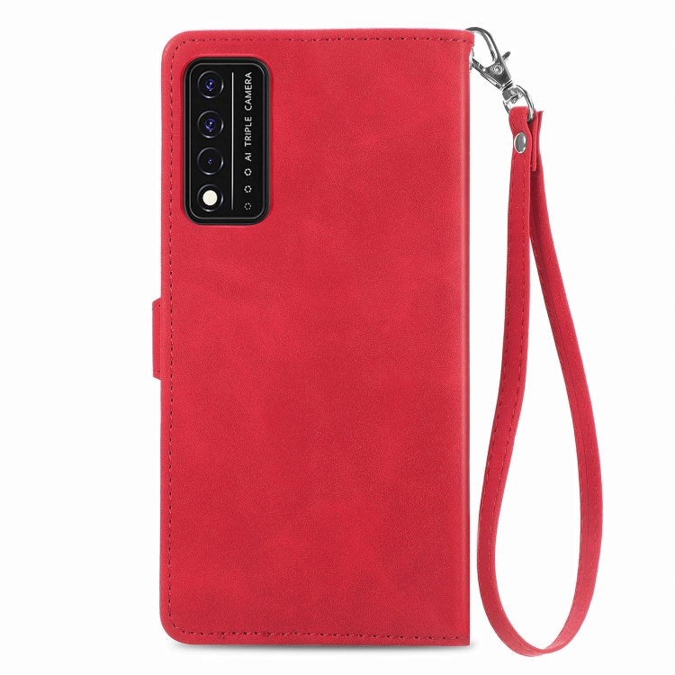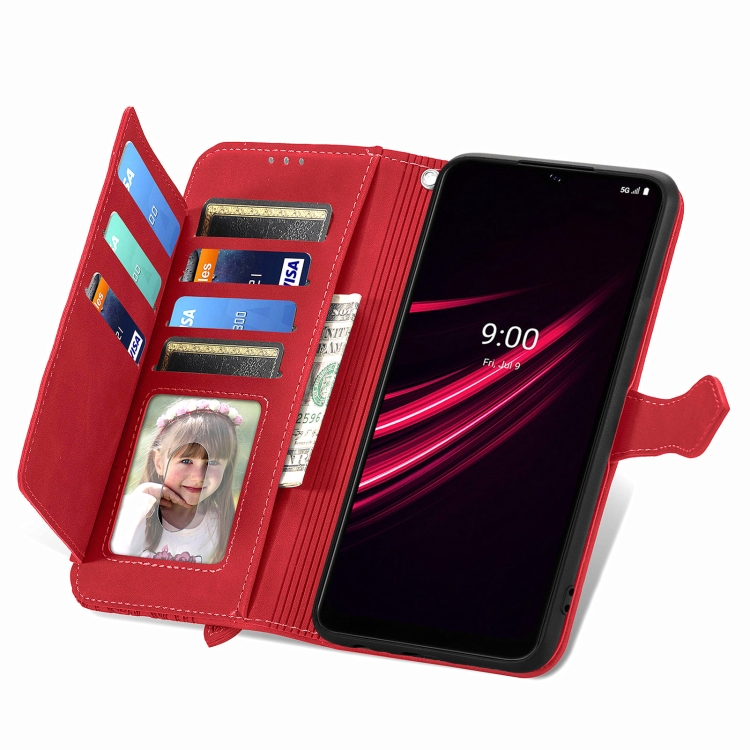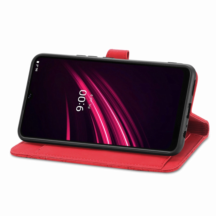 Funda de Cuero para T-Mobile Revvl V + 5G con Cremallera y Flores en Relieve (Rojo)