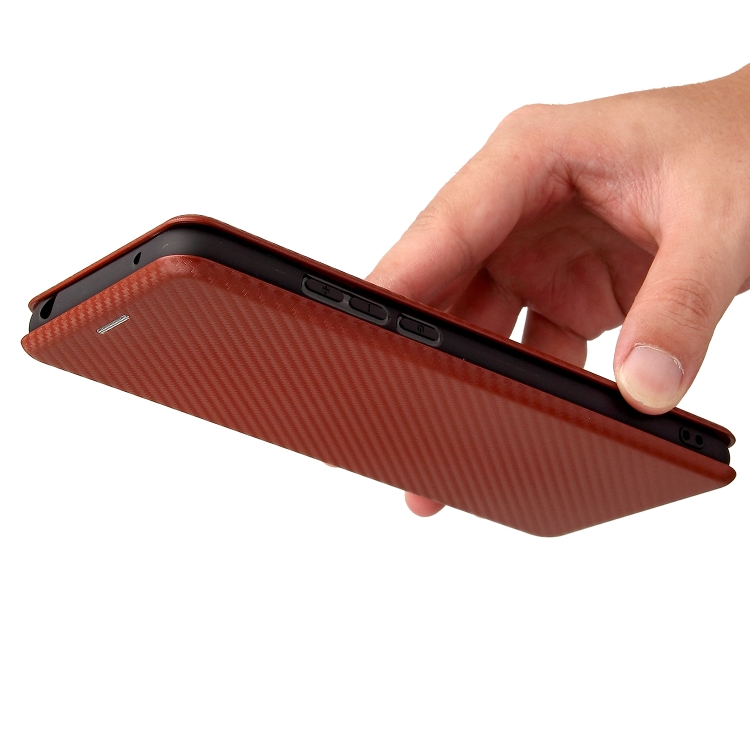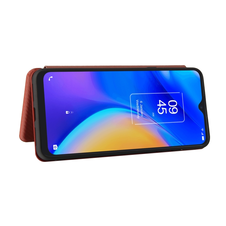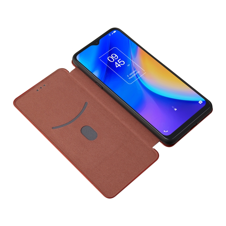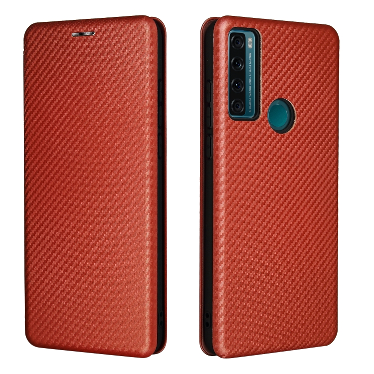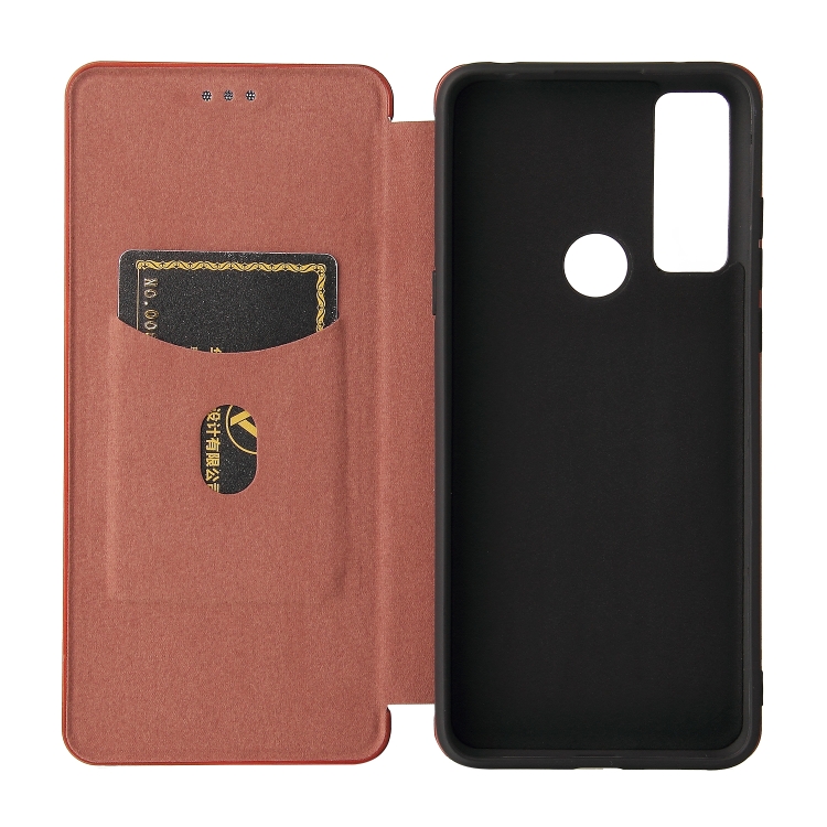 Funda para TCL 20 Se Fibra de Carbono Textura Magnética Horizontal Flip TPU + PC Cuero PU con Ranura (Marrón)