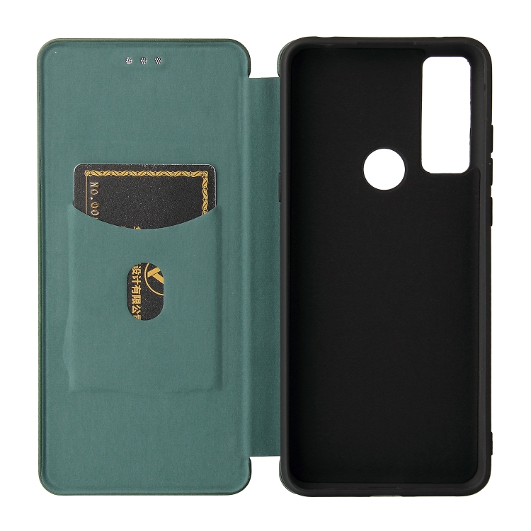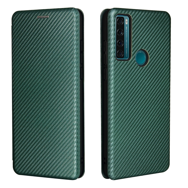 Funda para TCL 20 SE Textura Fibra de Carbono Magnética Flip TPU PC Cuero Pu Ranura Tarjeta (Verde)
