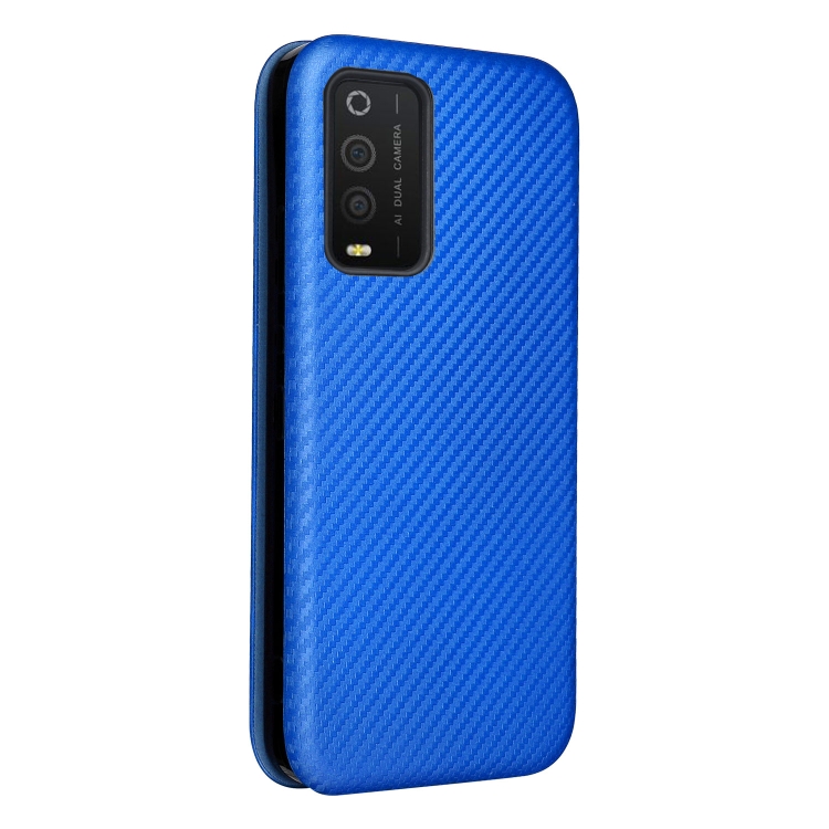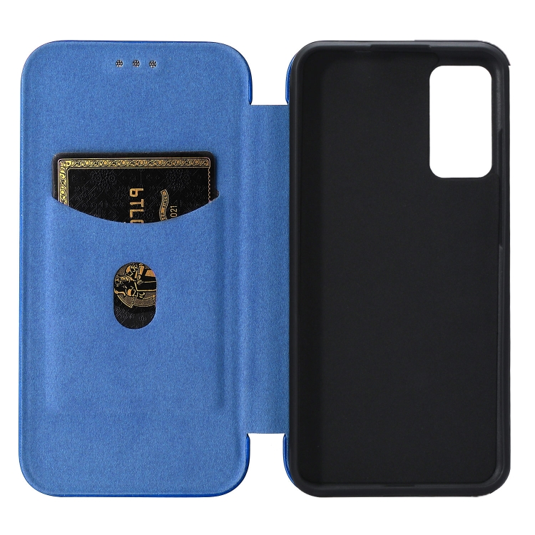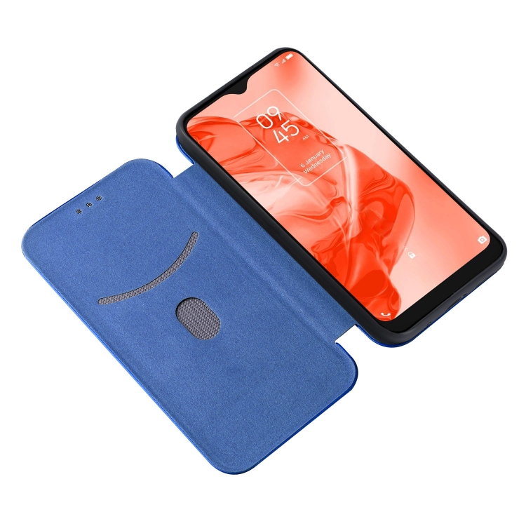 Funda para TCL 205 Fibra de Carbono Textura Magnético Horizontal Flip Cuero (Azul)