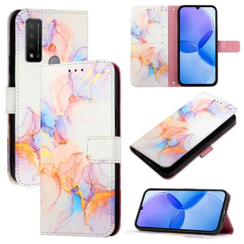 Funda de Cuero con Tapa para Tcl 20R 5G Pt003 con Patrón Mármol (Blanco)