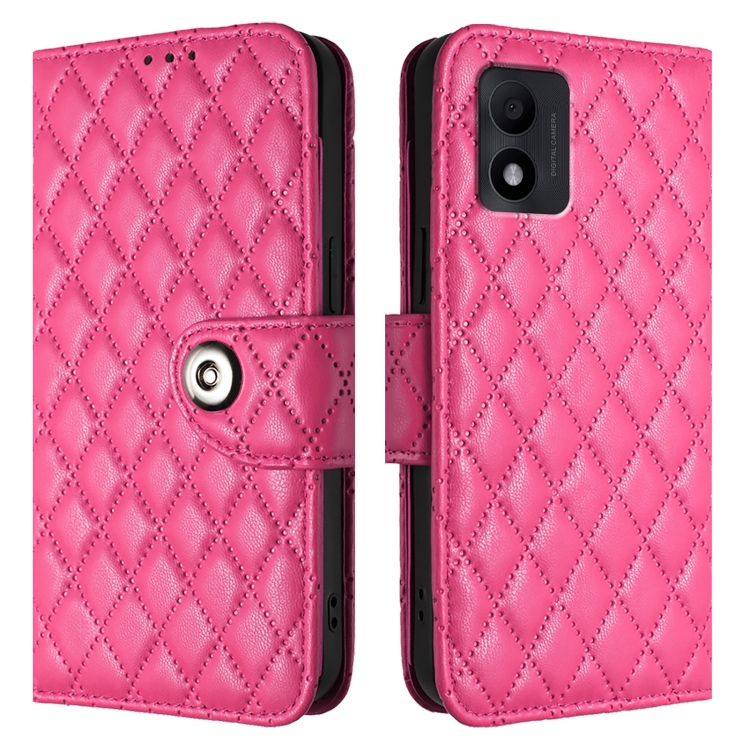 Funda para TCL 303 de Cuero con Tapa Textura Rómbica y Cordón (Rojo Rosa)