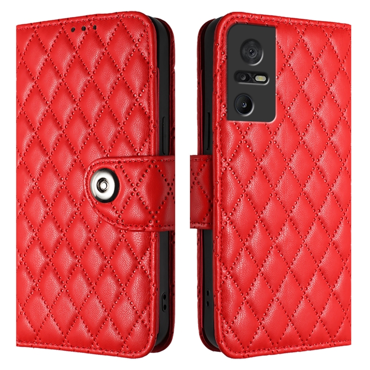 Funda para TCL 40 Se Cuero con Tapa Textura Rómbica y Cordón (Rojo)