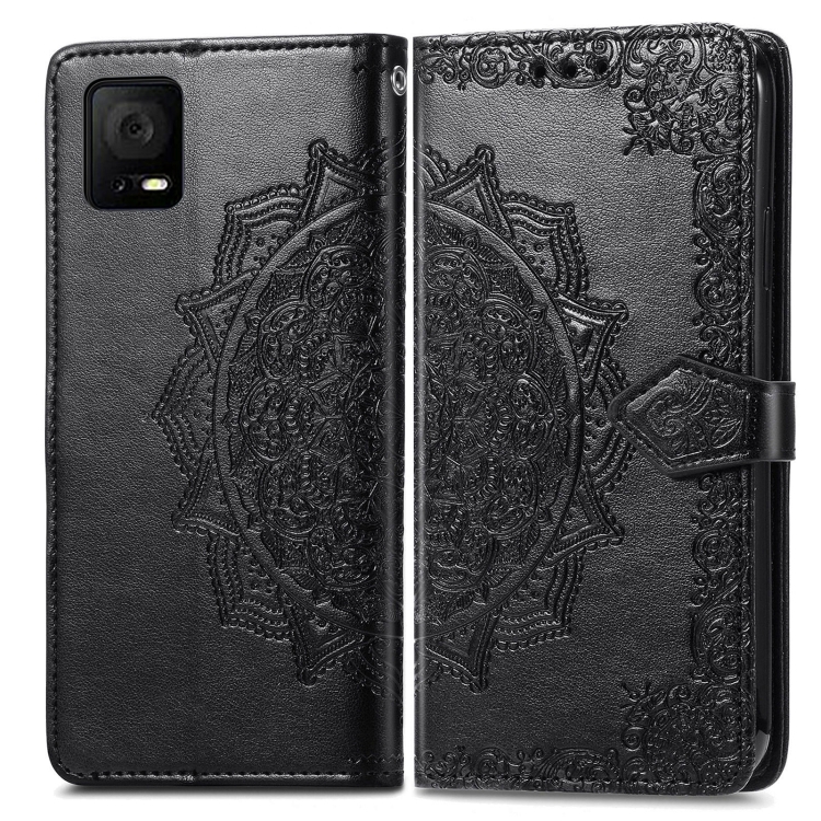Funda para TCL 405 Mandala Flower Caja de Teléfono de Cuero en Relieve (Negro)