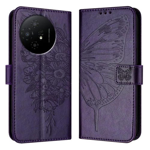 Funda de Cuero para TCL 50 XL 5G con Mariposa en Relieve (Púrpura Oscuro)