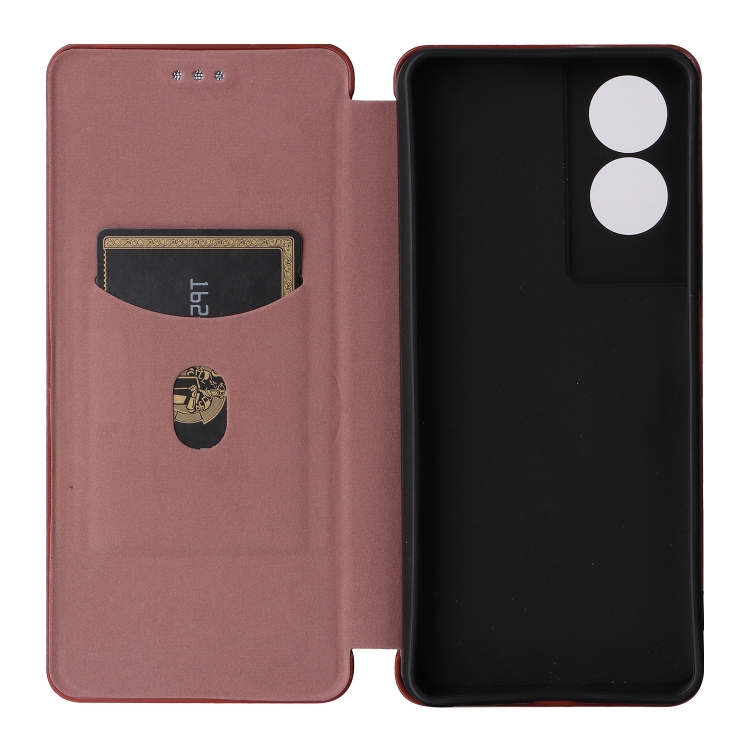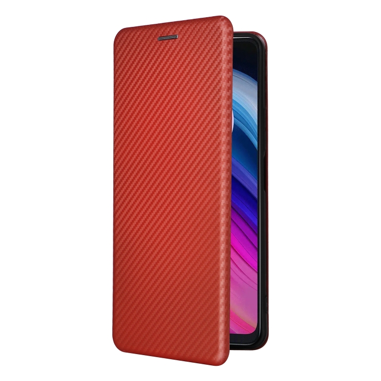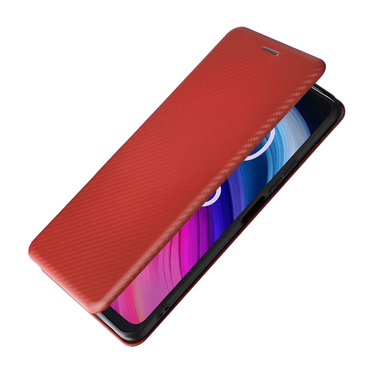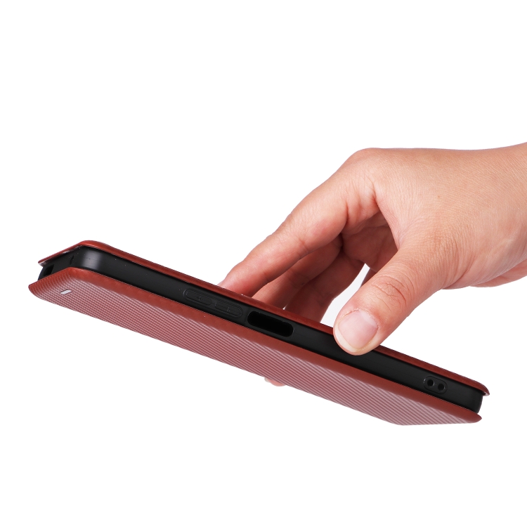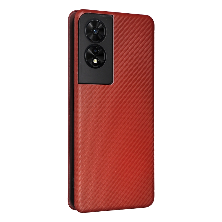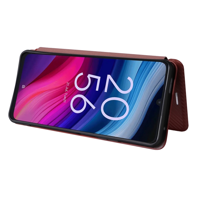 Funda de Cuero con Tapa para TCL 505 con Textura de Fibra de Carbono (Marrón)