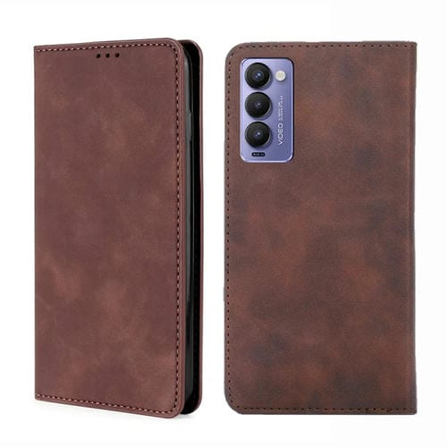 Funda de Cuero para Tecno Camon 18 / 18 P con Tapa Horizontal Magnética (Marrón Oscuro)