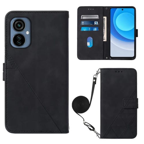 Funda de Cuero para Tecno Camon 19 Neo Crossbody 3D con Tapa En Relieve (Negro)
