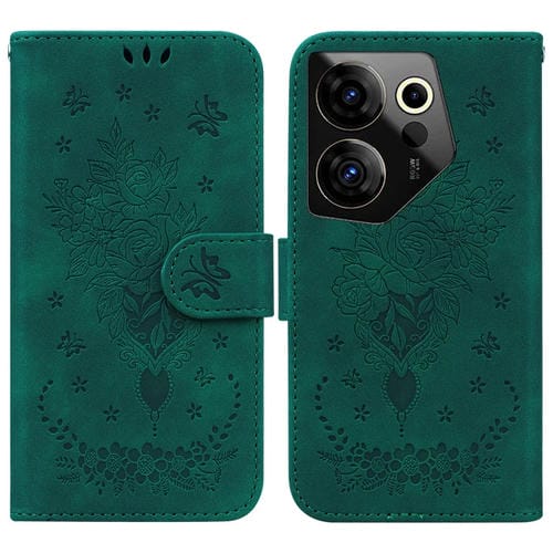 Funda de Cuero para Tecno Camon 20 Premier 5G Butterfly Rose en Relieve (Verde)