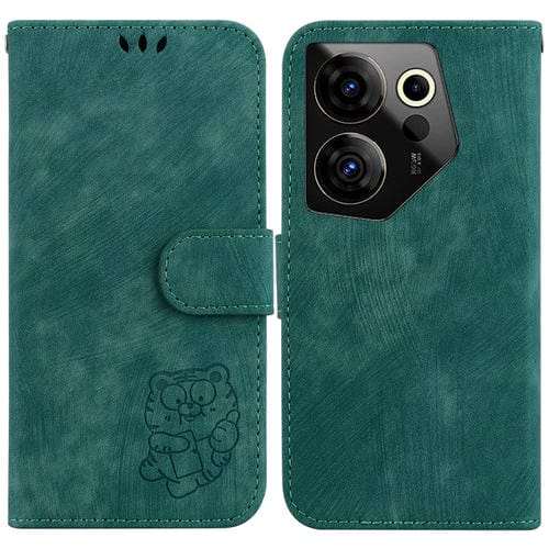Funda para Tecno Camon 20 Premier 5G de Cuero con Relieve Little Tiger (Verde)