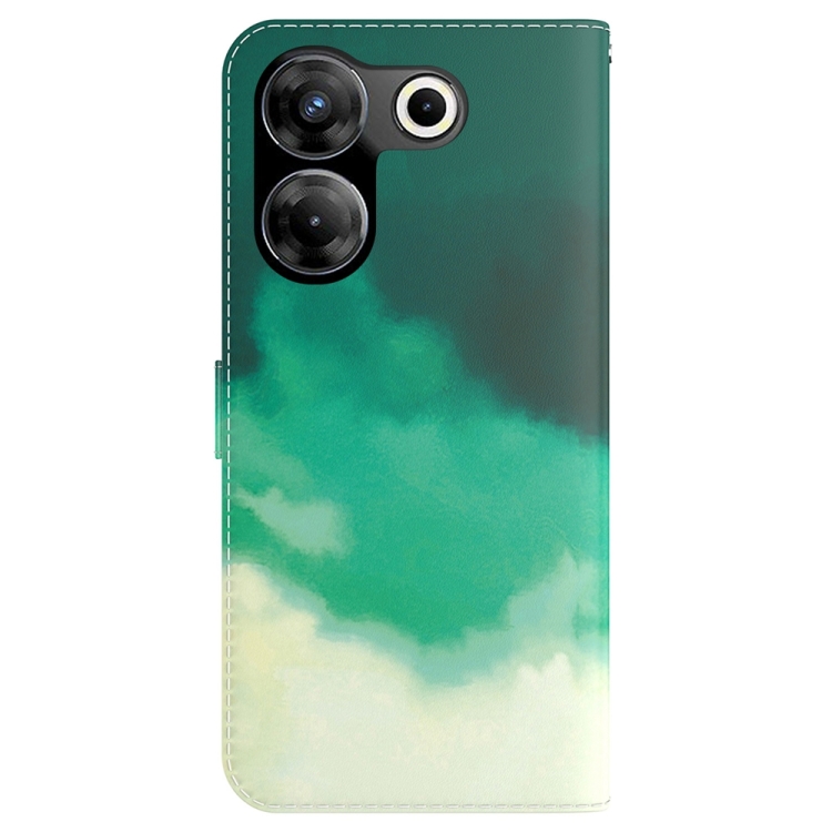 Funda de Teléfono Tecno Camon 20 Pro 5G con Tapa de Cuero y Patrón de Acuarela (Verde Cian)