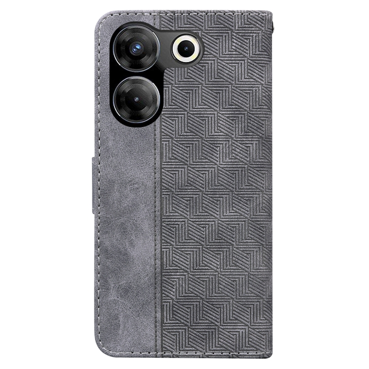 Funda de Cuero para Tecno Camon 20 Pro 5G con Relieve Geométrico (Gris)