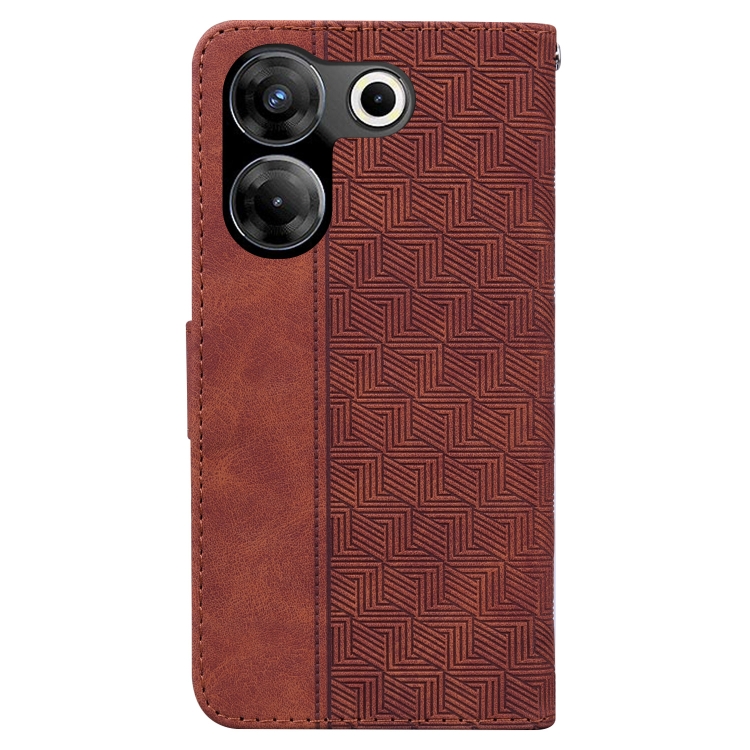 Funda de Cuero para Tecno Camon 20 Pro 5G con Relieve Geométrico (Marrón)