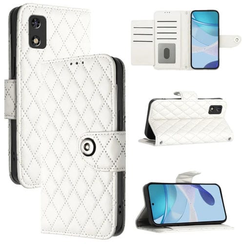 Funda de Cuero para Tecno Pop 5C con Tapa Textura Rombal y Cordón (Blanco)
