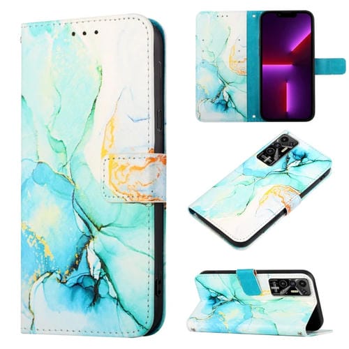 Funda Flip de Cuero para Tecno Pova 2 Pt003 Patrón Mármol (Verde)