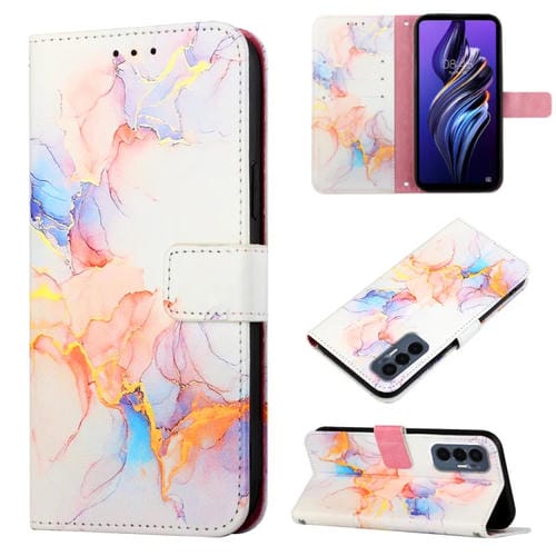 Funda de Cuero con Tapa para Tecno Pova 3 Le7 Pt003 Patrón Mármol (Blanco)