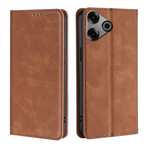 Funda de Cuero Magnética para Tecno Pova 6 Pro 5G Skin Feel (Marrón Claro)