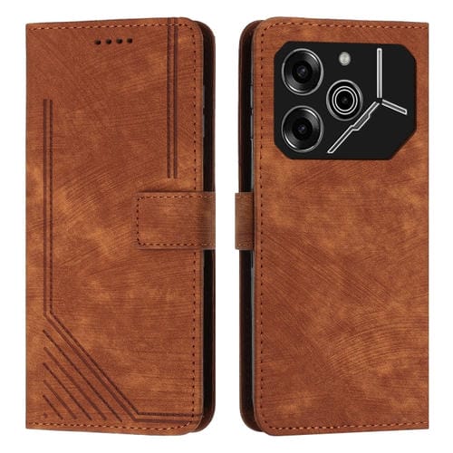 Funda de Cuero para Tecno Pova 6 Pro con Patrón de Rayas y Cordón Largo (Marrón)