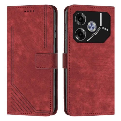 Funda de Cuero para Tecno Pova 6 con Patrón de Rayas y Cordón Largo (Rojo)
