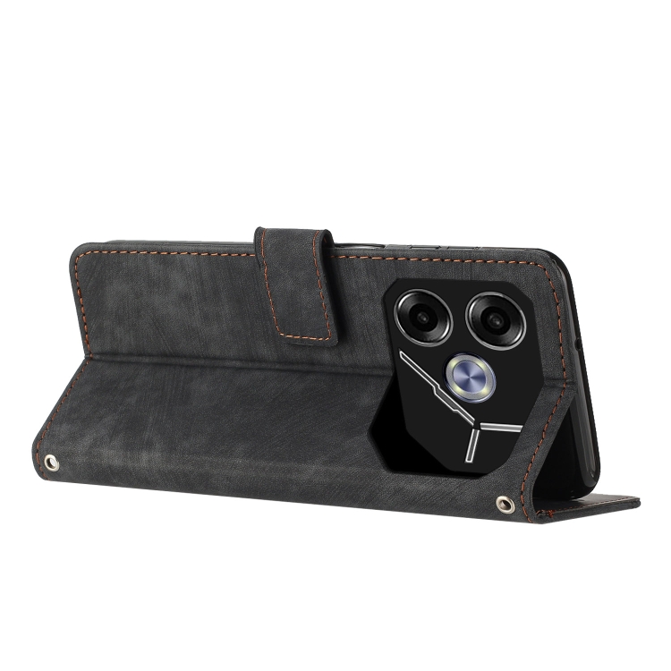 Funda de Cuero para Tecno Pova 6 con Patrón de Rayas y Cordón Largo (Negro)