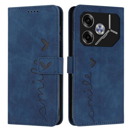 Funda para Tecno Pova 6 Skin Feel Heart de Cuero en Relieve con Cordón Largo (Azul)