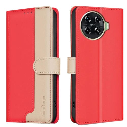 Funda para Tecno Spark 20 Pro + Funda de Cuero Antirrobo RFID (Rojo)