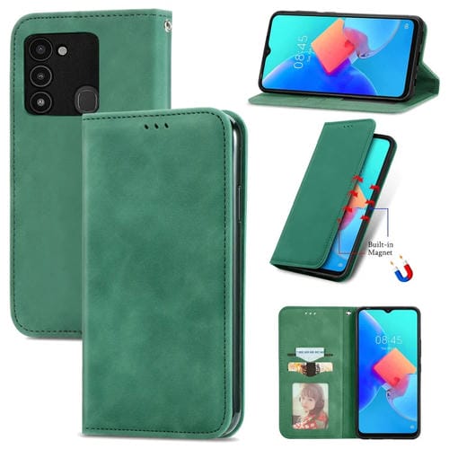 Funda Magnética de Cuero para Tecno Spark 8C Retro Skin Feel (Verde)