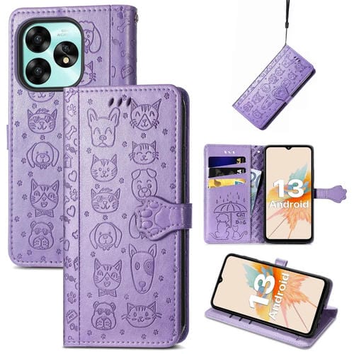 Funda de Cuero para Umidigi A13 Pro 5G con Relieve Perros y Gatos (Púrpura)