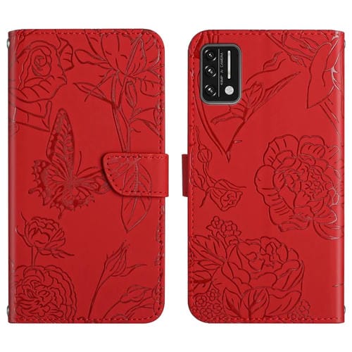 Funda de Cuero En Relieve para Umidigi A7S Peony Mariposa (Rojo)