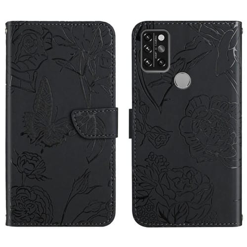 Funda para Umidigi A9 Pro Piel Siente Cuero Relieve Peonía y Mariposa (Negro)