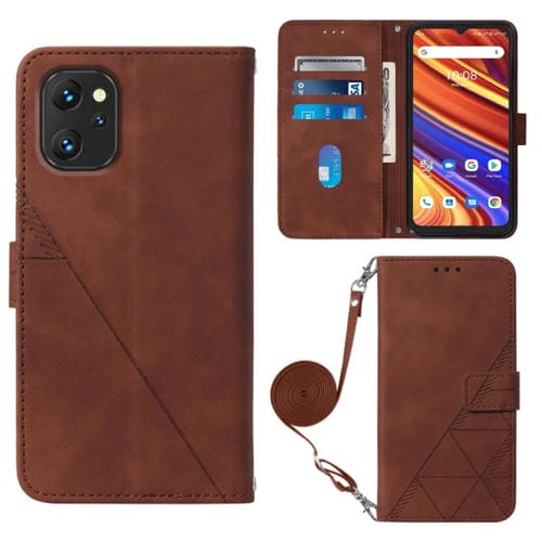 Funda de Cuero para Umidigi Power 7 y Power 7S Crossbody 3D con Tapa en Relieve (Marrón)