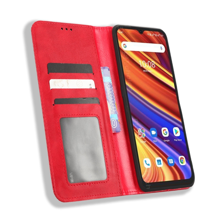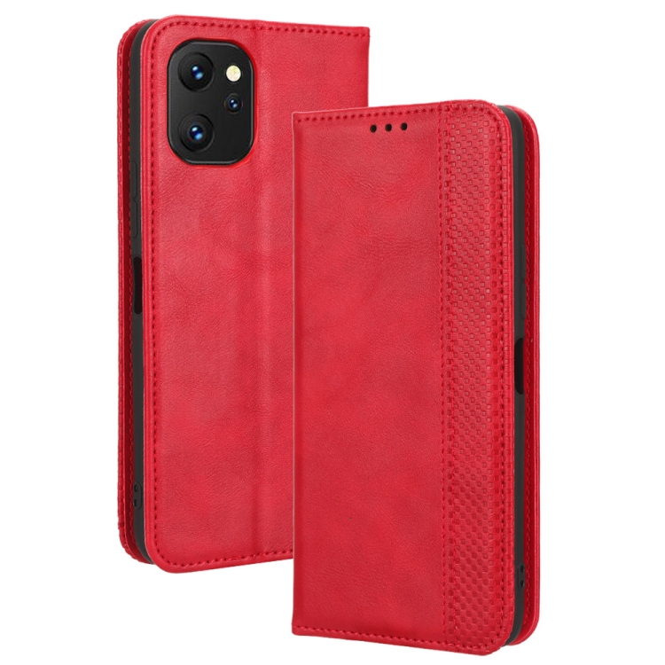 Funda de Cuero para Umidigi Power 7 y Power 7S con Hebilla Magnética y Textura Retro (Rojo)