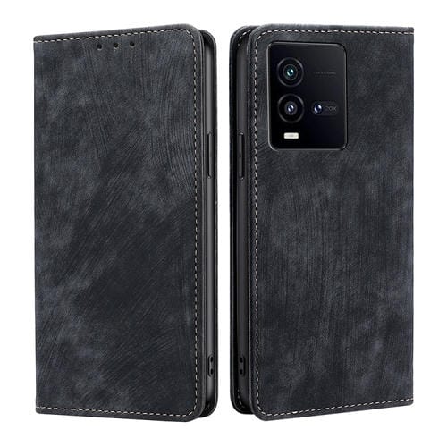 Para Vivo Iqoo 10 Rfid Funda de Teléfono de Cuero Magnético con Cepillo Antirrobo (Negro)