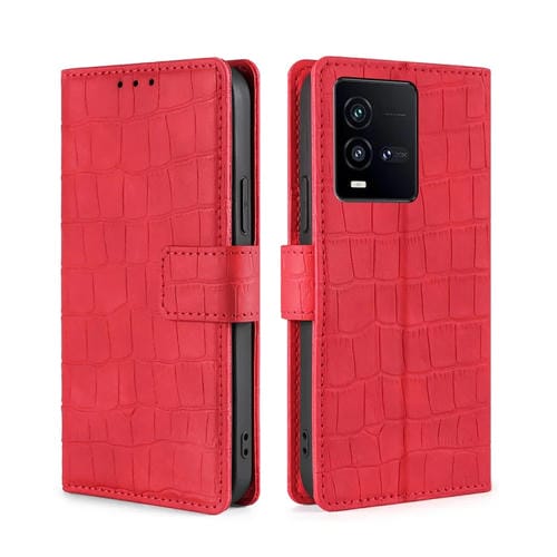Para Vivo Iqoo 10 Skin Feel Cocodrilo Cierre Magnético Funda de Cuero para Teléfono (Rojo)