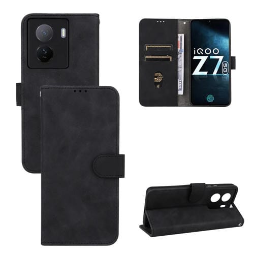 Para Vivo Iqoo Z7 Skin Feel Magnetic Flip Leather Phone Case (Negro)
