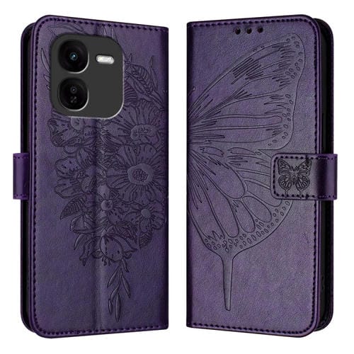 Para Vivo Iqoo Z9X Funda de Cuero con Mariposa En Relieve (Púrpura Oscuro)