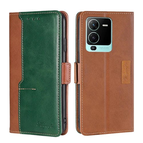 Para Vivo S15 Pro 5G Contrast Color Side Hebilla de Cuero Case (Marrón Claro + Verde)
