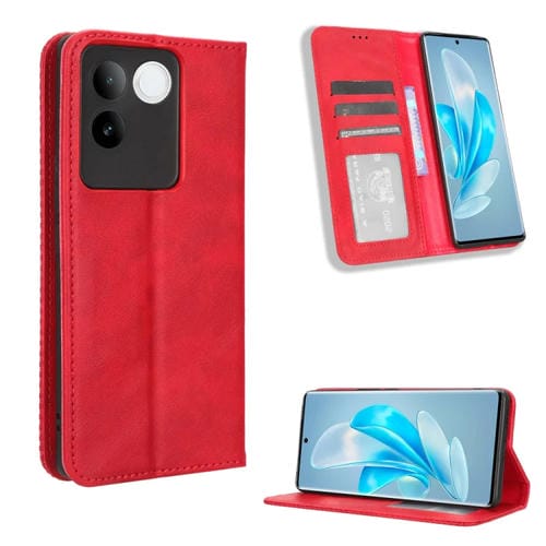 Para Vivo S17E Hebilla Magnética Textura Retro Funda de Cuero para Teléfono (Rojo)