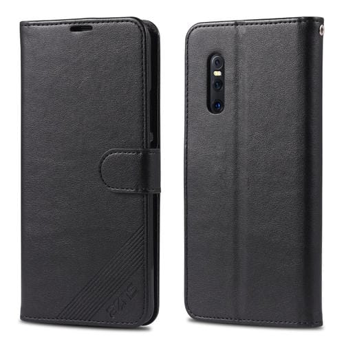 Para Vivo X27 Azns Estuche de Cuero con Tapa Horizontal con Textura de Piel de Oveja con Soporte, Ranuras para Tarjetas y Billetera (Negro)