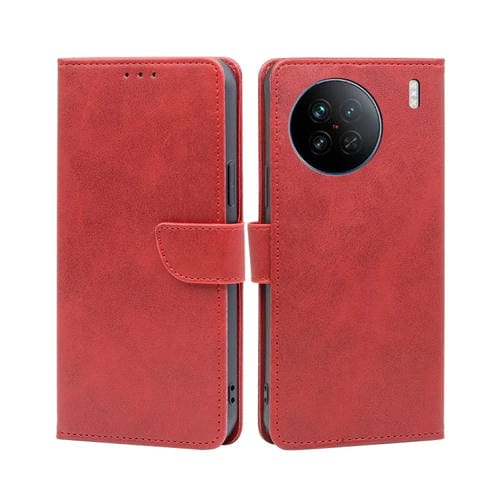 Para Vivo X90 Becerro Textura Hebilla Flip Funda de Cuero para Teléfono (Rojo)