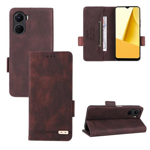 Para Vivo Y16 4G Cierre Magnético Flip Funda de Cuero para Teléfono (Marrón)