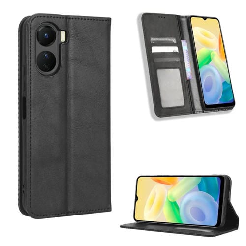 Para Vivo Y16 / Iqoo Z7I Hebilla Magnética Textura Retro Funda de Cuero para Teléfono (Negro)