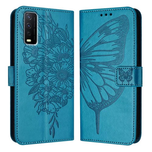 Para Vivo Y20/Y20A/Y20I/Y20S/Y20G/Y11S Funda para Teléfono de Cuero con Mariposa En Relieve (Azul)
