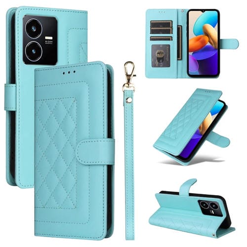 Para Vivo Y22S / Y35 Funda para Teléfono con Tapa de Cuero Diamond Lattice (Verde Menta)