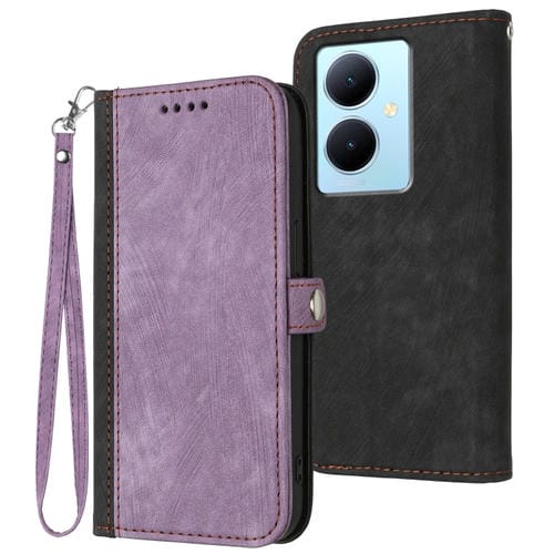 Para Vivo Y78 + 5G Global / Y78 5G Global Hebilla Lateral Correa de Mano Doble Funda de Cuero para Teléfono (Púrpura)
